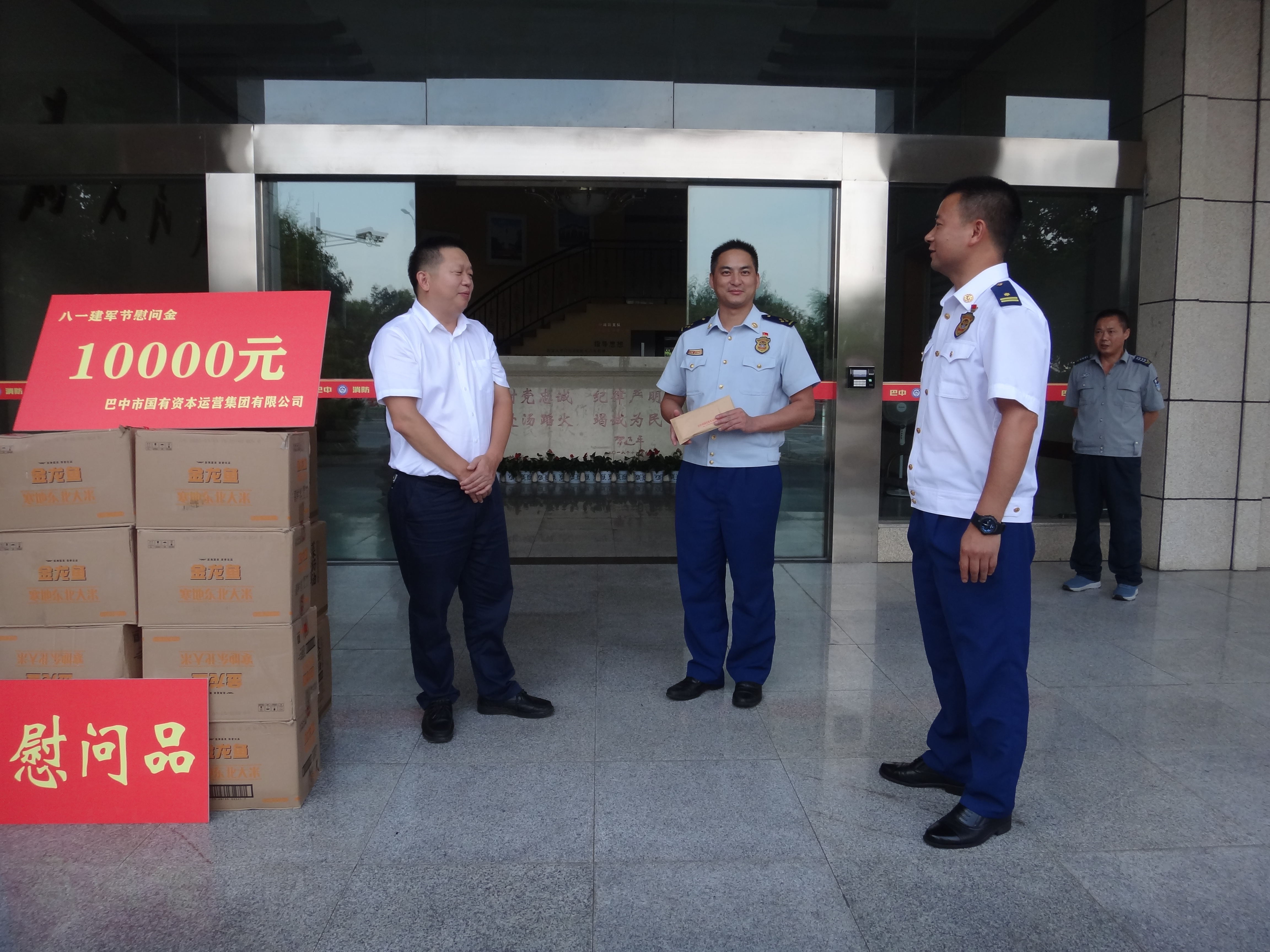 銘記光輝歷史崢嶸歲月,推進(jìn)強(qiáng)國強(qiáng)軍大國夢(mèng)想。為表達(dá)對(duì)消防官兵們無私奉獻(xiàn)的崇高敬意,充分發(fā)揚(yáng)擁軍愛民的光榮傳統(tǒng),增強(qiáng)與消防官兵的魚水之情,7月31日,時(shí)值“八一”建軍節(jié)即將到來之際,受集團(tuán)公司主要負(fù)責(zé)人羅少波的委托,公司黨委副書記、總經(jīng)理陳林才和財(cái)務(wù)總監(jiān)喻九德帶隊(duì)赴市消防支隊(duì)開展“八一”慰問活動(dòng)。